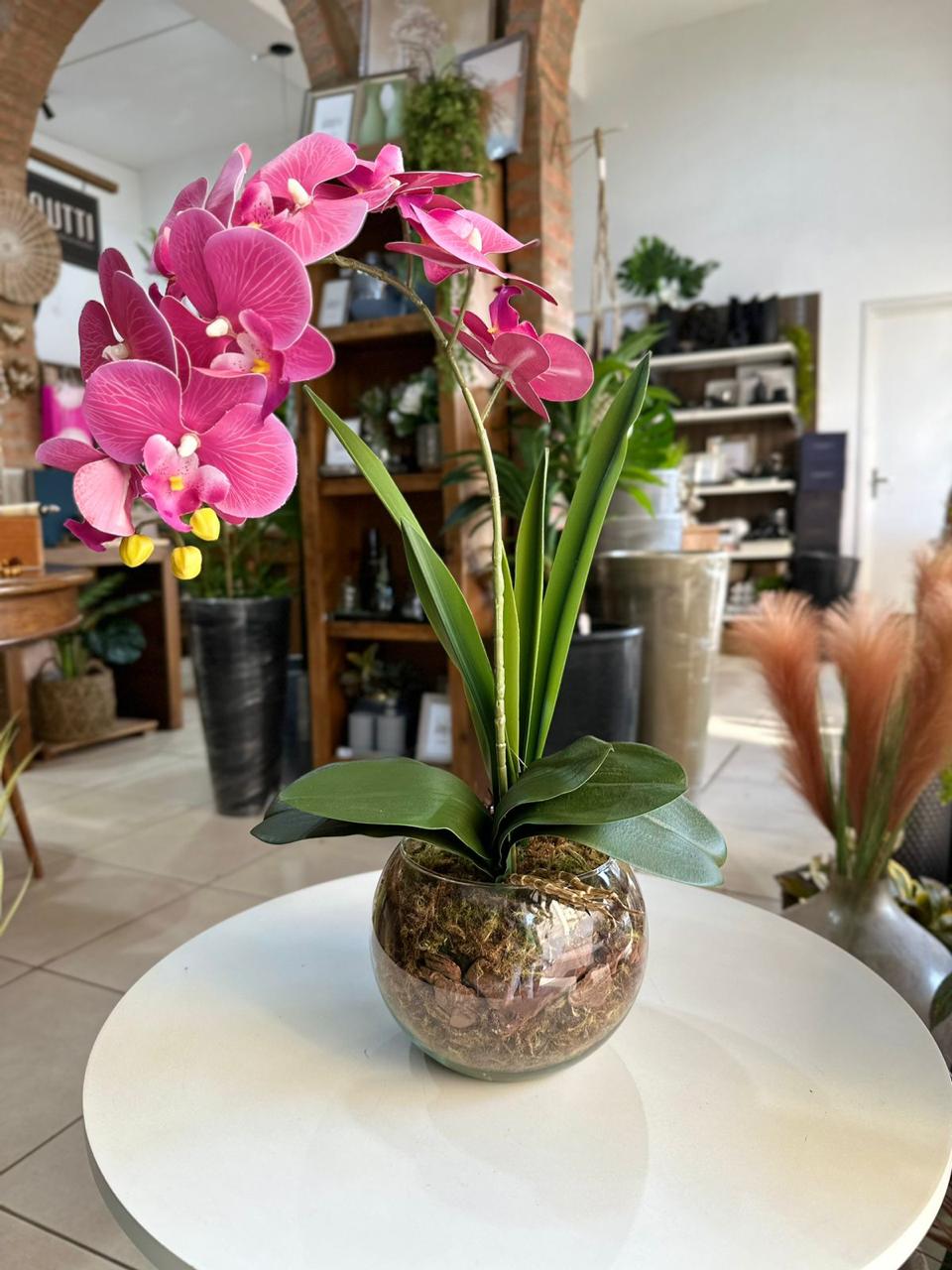 Um arranjo de orquídeas permanentes rosa é uma peça elegante e sofisticada que traz um toque de delicadeza e charme ao ambiente. Com orquídeas em um tom suave de rosa, o arranjo simula a beleza das flores naturais, mantendo um aspecto realista e vibrante. Geralmente montado em um vaso elegante, como em um cachepot vidro transparente, o arranjo pode ser complementado com folhagens verdes e detalhes decorativos sutis. Ideal para decorar mesas, estantes ou mesas de centro, esse arranjo adiciona um toque de frescor e estilo sem a necessidade de cuidados constantes.